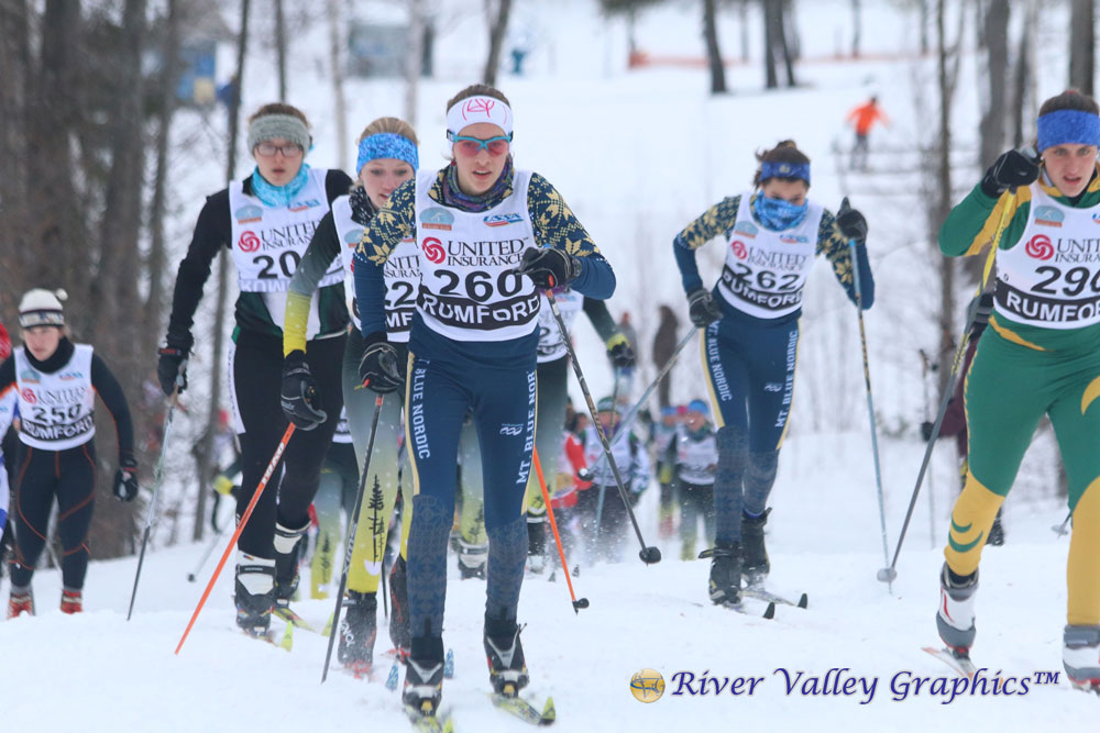 Nick Newman of Mtn. Valley and Sarah Klein of Mtn. Valley are the 2015 MVC Giant Slalom champions. Ethan Harriman of Maranacook and Julia Ramsey of Mt. Blue are the 2015 KVAC classical champions. Keenan Martin of Dirigo and Isabel Gerencer of St. Doms are the 2015 MVC classical champions. For team scores after day 1, the Maranacook girls and the Mt. Blue boys have the overall lead in the KVAC. The Telstar boys and girls have the overall lead in the MVC after day 1. Miles Pelletier of Mt. Blue, Ella Simon of Camden Hills, Gabrielle Stone of Telstar, and Conner Woods of Mtn. Valley all have the lead in the skimeister competition after day 1. RESULTS | RACE PHOTOS