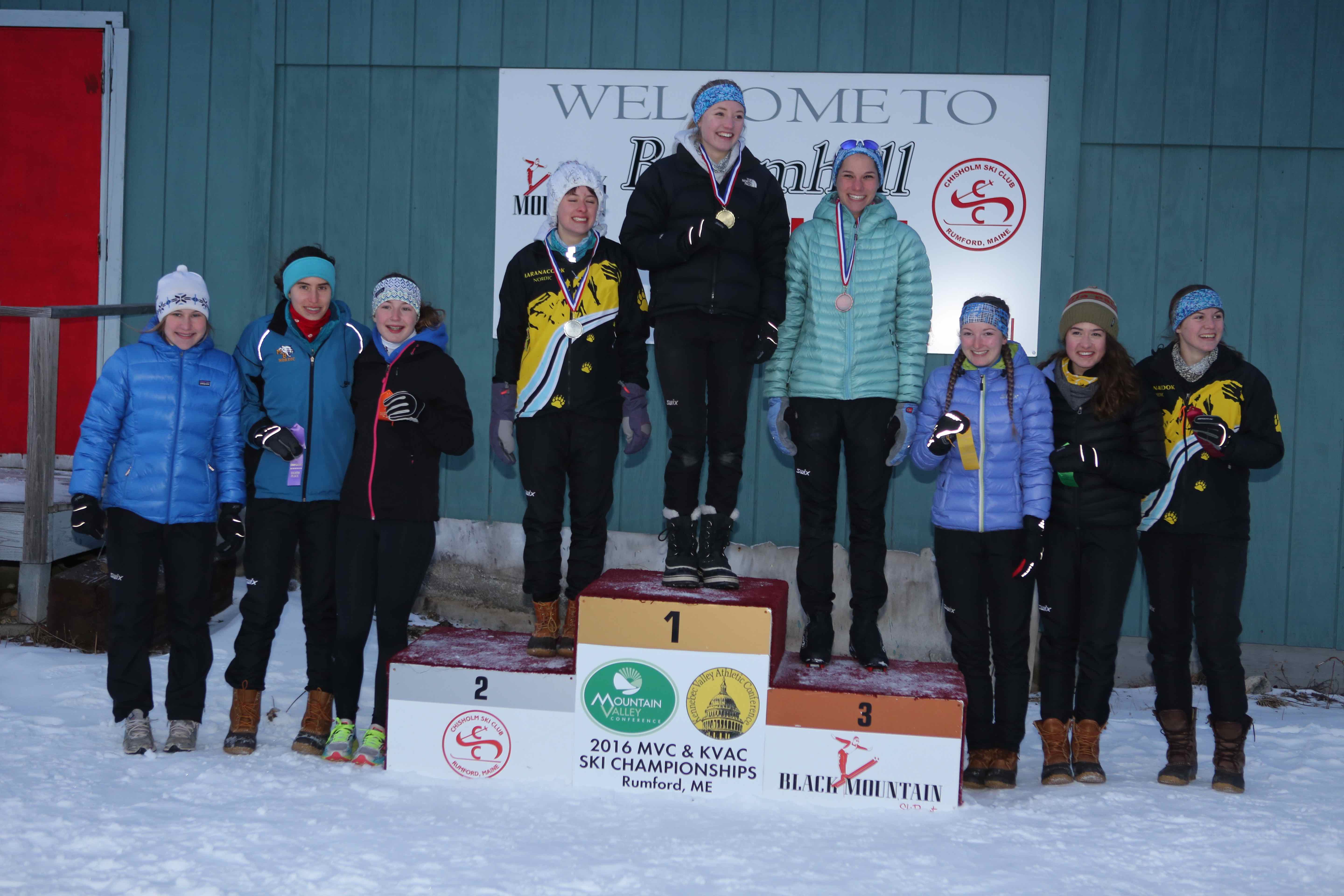 Mt. Blue boys and girls are the 2016 KVAC Overall Champions. Abby Despres of Maranacook and Luca DeAngelis also of Maranacook win the KVAC Freestyle Championships. Jenny Wilbraham of Morse and DeAngelis won the KVAC Classical Championships. Rachel Tooth of Maranacook and Maxx Bell of Edward Little win the KVAC Giant Slalom Championships. The Maranacook girs and the Mt. Blue boys are the 2016 KVAC Nordic Champions. The Edward Little girls and the Mt. Blue boys are the 2016 KVAC Alpine champions. Sam Smith of Mt. Blue is the 2016 KVAC Skimeister champion. RESULTS | AWARDS PHOTOS