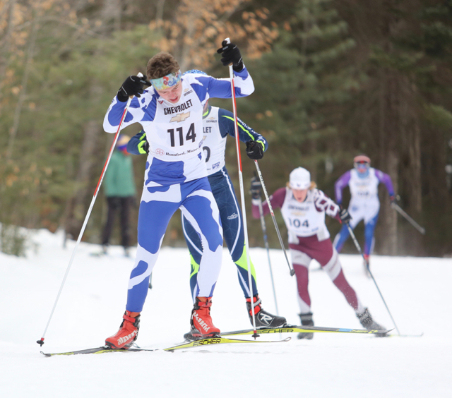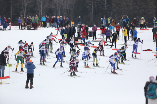 It was an epic and exciting day at the chilly Telstar Relays in Bethel. The lead changed several times during the course of the 4-person relay amongst Gould Academy, Mt. Blue and Maine Coast Waldorf but it was Gould that came out on top. The Gould Academy team of Ben Alford, Izzy Chase, Marcus Wentworth, and Steph Nicols were victorious with a final time of 30:38.7. The team of Tucker Pierce, Louise Ahearne, Nick Neveu, and Olivia Skillings of Maine Coast finished in 2nd place with a time of 30:42.4. The Mt. Blue quad consisting of Tucker Barber, Julia Ramsey, Sam Smith, and Meg Charles finished in 3rd with a final time of 32:00.6. COMPLETE RESUTS | DW ACTION PHOTOS | BREWSTER BURNS PHOTOS