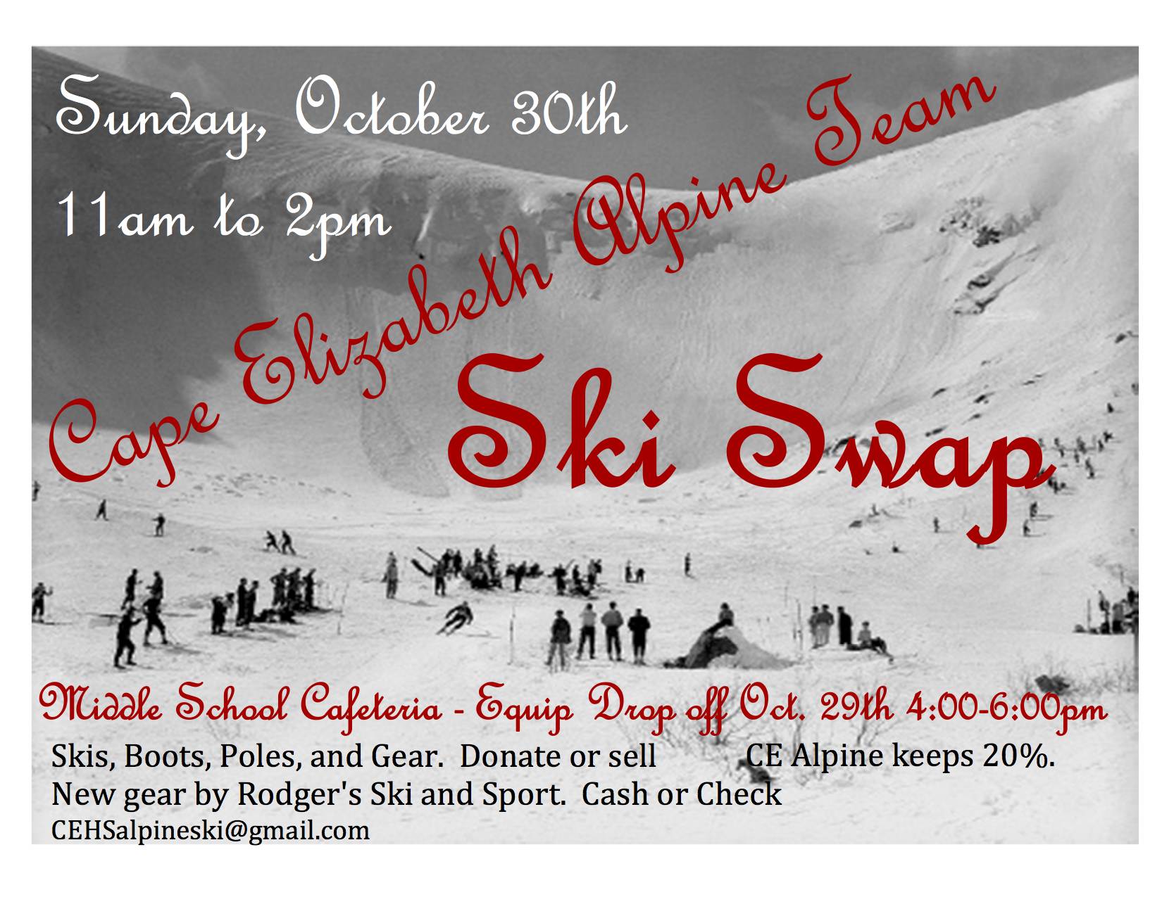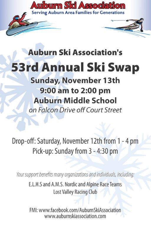 The Freeport Ski Boosters will have a swap at the high school from 9:30am - 12:30pm on Saturday, October 29th. New this year vendors from Carters XC Ski Center and Sport Thoma will be
