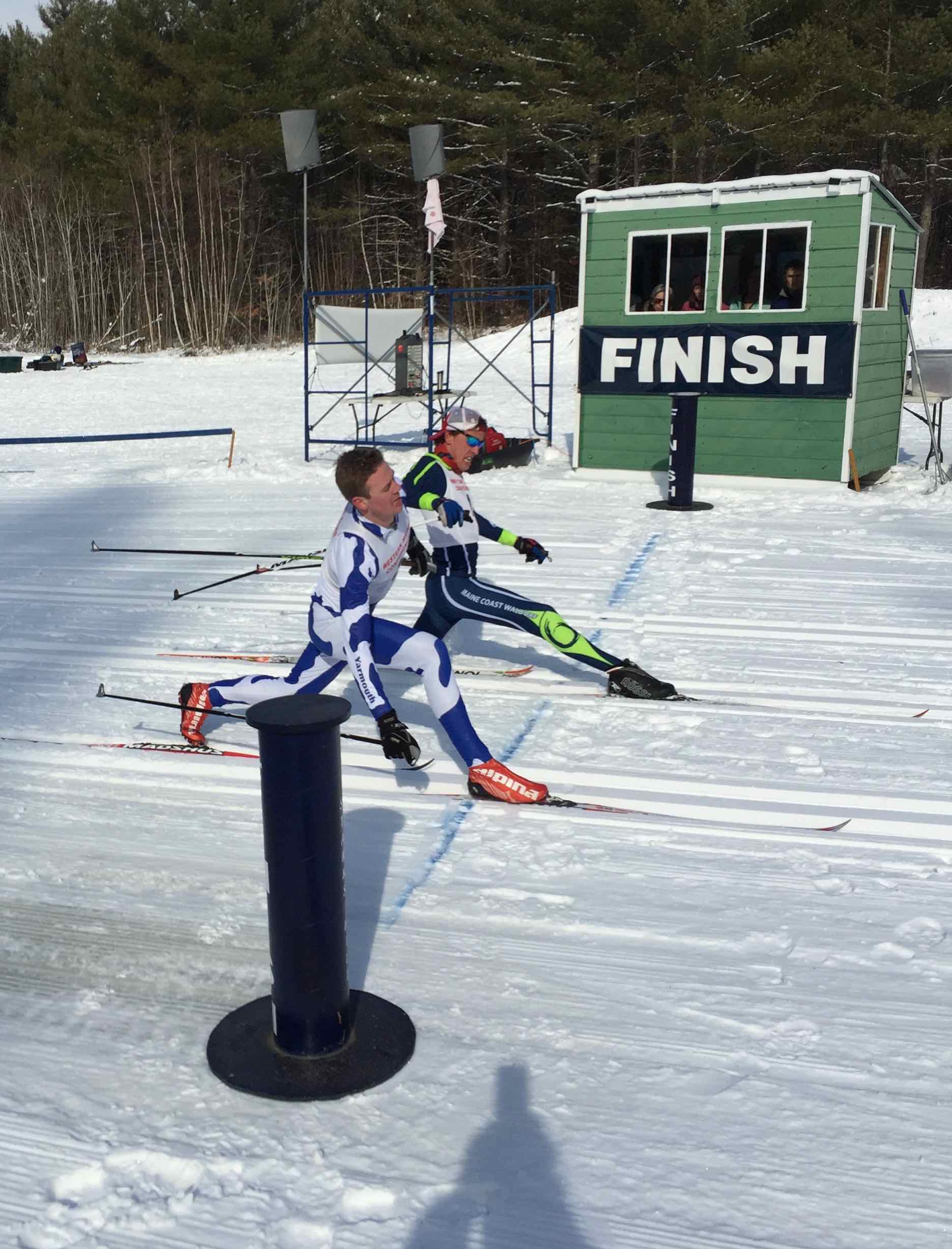 Lily Johnston of Freeport and Willson Moore of Waynflete win the 2016 WMC Nordic Classical title. The Freeport boys and the Yarmouth girls win the WMC Nordic team