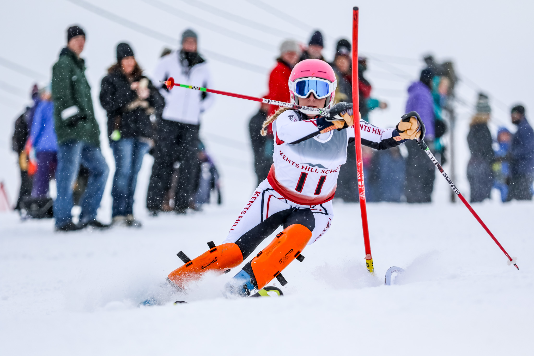 Amy DeHaas of Kent's Hill and Kyle Farrington of Mt. Blue won the Maranacook Slalom at Kent's Hill. DeHaas, skiing on her home slopes, had the fastest times for both the first