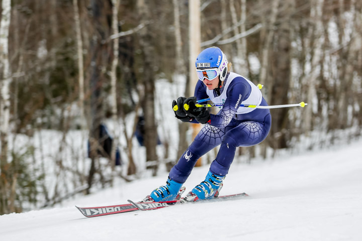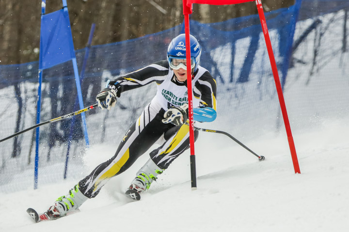 Lydia Morin of Camden Hills and Alec Daigle of Maranacook won the Leavitt Invitational Giant Slalom race at Mt. Abram on Monday.
