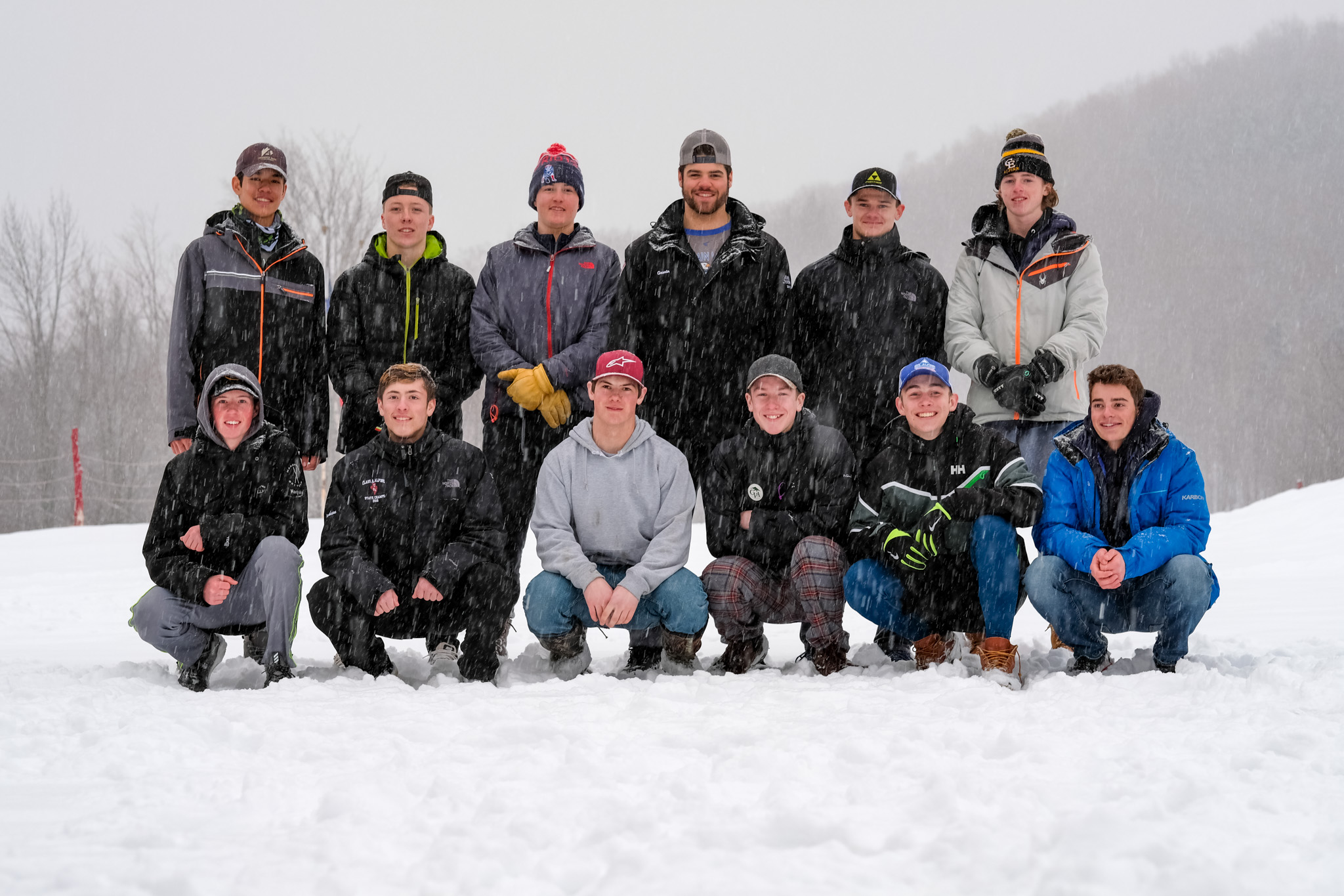 The Eastern High School Alpine Champinships Maine Team Shootouts were held today at Black Mtn in Rumford under falling snow. Racers who finished in the top 15 in slalom and giant slalom at their